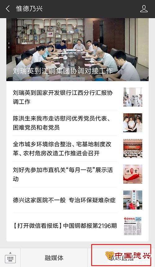 在直播前,德兴报社将向朋友圈、全市各微信群发布“直播链接”,受众只要直接点开链接即可收看!点击下方“阅读原文”也可直接进入“直播链接”收看!
