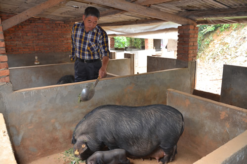 罗贤水不仅能吃苦耐劳,而且胆大心细。当他从中央电视台七套栏目中看到贵州省凯里市养香猪的节目后,他大胆以1200元一头的价格,从凯里市某香猪养殖场买来8头香猪(种猪和母猪)饲养,通过精心培养,除了平常经常宰杀供食客吃外,如今猪圈里还养有40多头香猪,而且通过自己“自作聪明”将香猪与土猪交配,产下了几十头混合性肉猪,猪肉不仅实现了自给自足外还可出售赢利。去年听一朋友介绍养甲鱼致富的消息后,他又马上挖建了个鱼塘,并从南丰引进了900只甲鱼苗进行生态养殖,如今甲鱼已养至每只斤把重,只要食客想吃甲鱼,他可以随时从甲鱼池中捕捞出来。