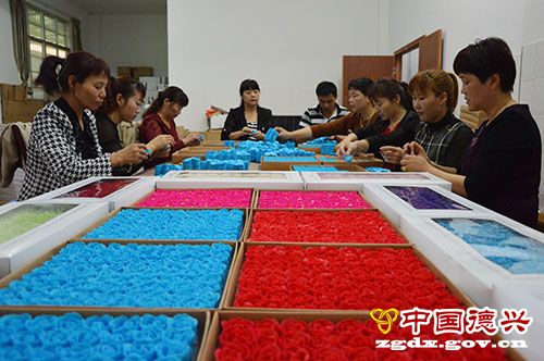 返乡妇女朱德英2015年回乡创办企业生产香皂花,产品远销韩国、日本及东南亚许多国家,带动农村留守妇女100余人就业,当年实现销售收入300余万元。据了解,近年来,我市大力引导支持妇女创业,以创业带动就业,吸引服装、窗帘、雨伞等多个行业能人回乡创业,发展来料加工点100余个,拓展妇女就业创业渠道。(实习生 季子力 记者 余音 董世超 摄)